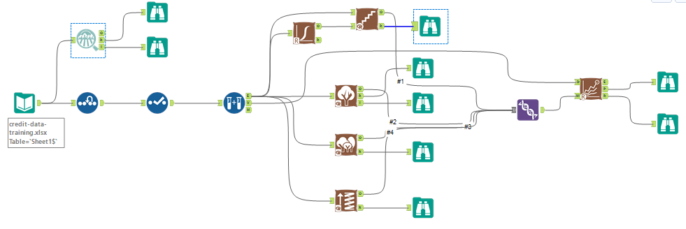 First, I built 4 models in Alteryx and used the model comparison tool to validate these models: