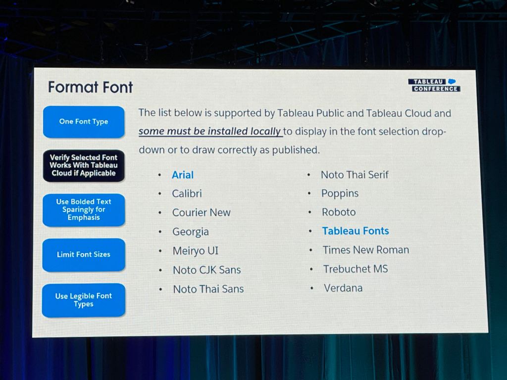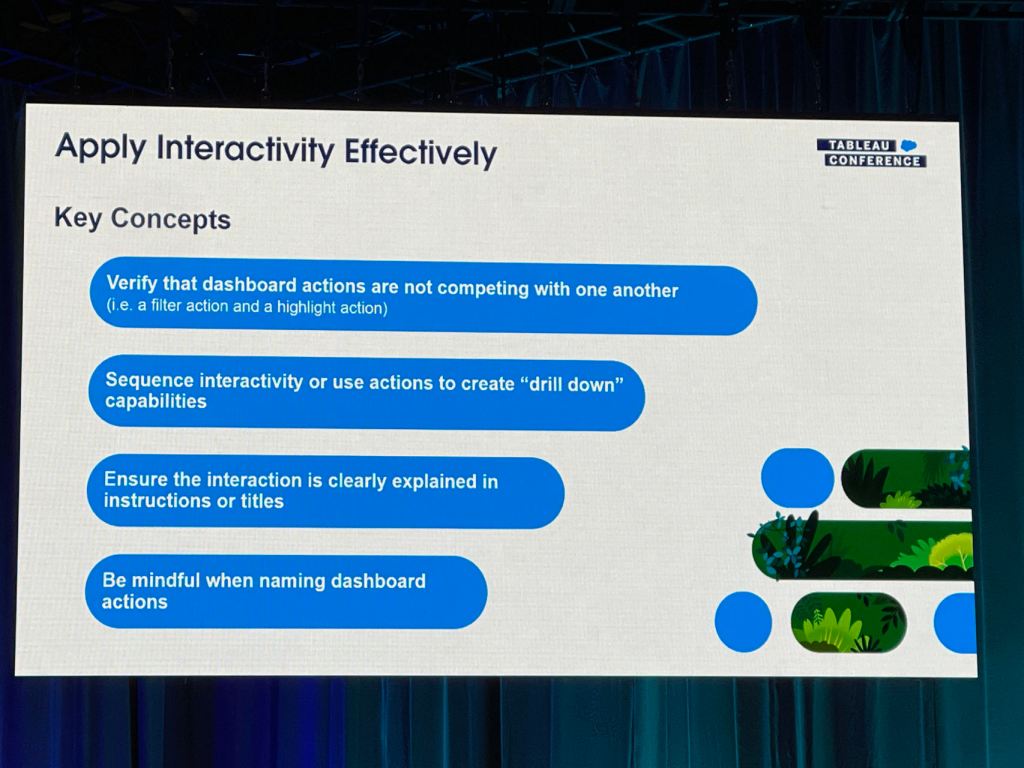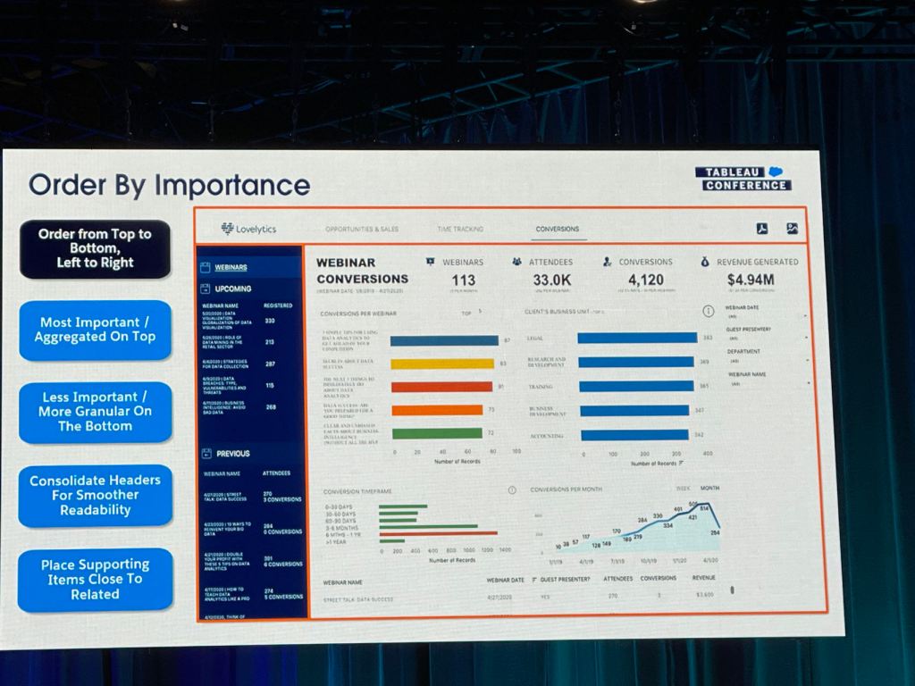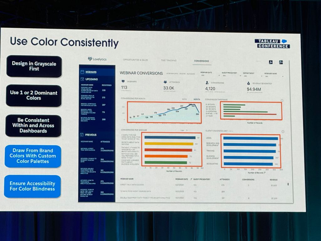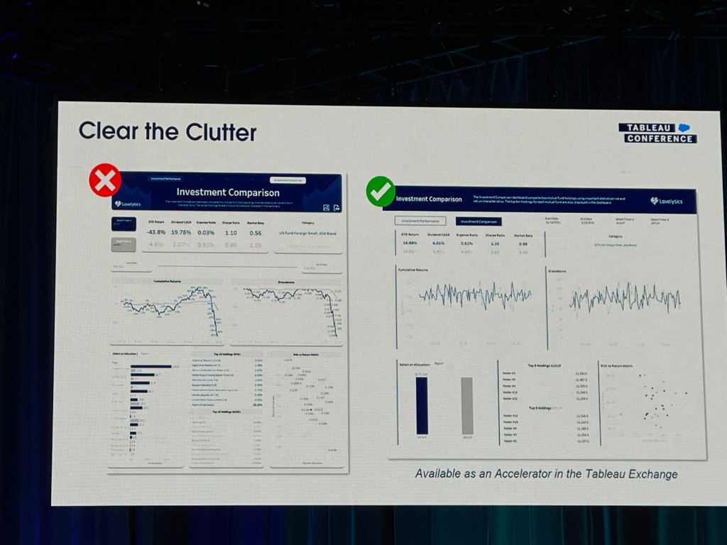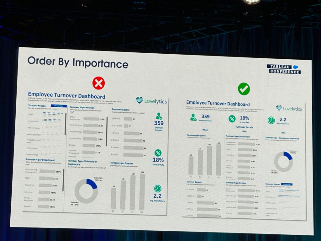 I also took some notes from the session that Eric and Cait showed how they improve a Tableau dashboard for their client using the checklist above.