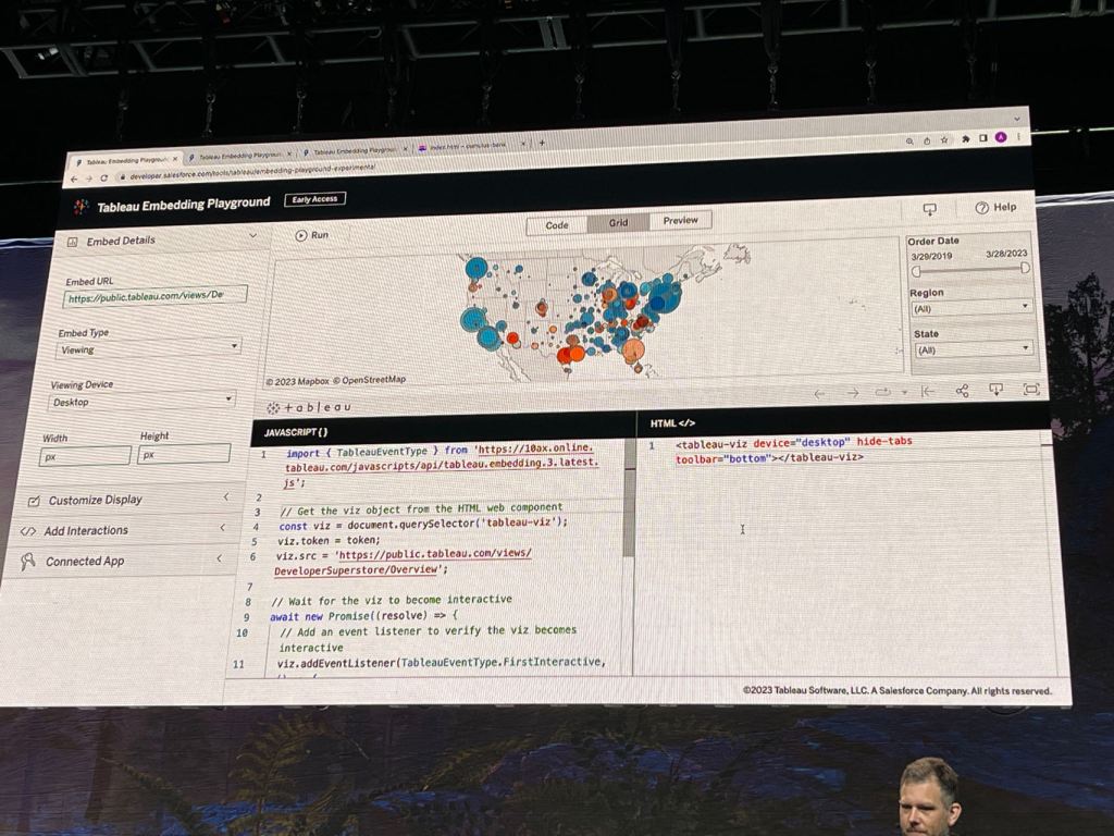Session I joined: 5/10/23 10:30AM – 11:10AM Build Unique Data Products with Tableau Embedded Analytics presented by Ewald Hofman and Ashiwin Sekar.