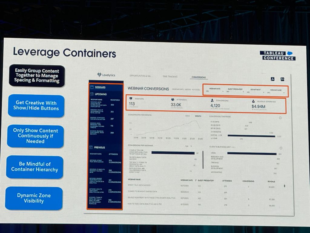Iron Viz has produced some of the best vizzes from the Tableau community. This session dive into the most memorable Iron Viz Visualizations over the years and celebrate this year’s top 15 game-inspired entries. I took the pictures below during the seesion: